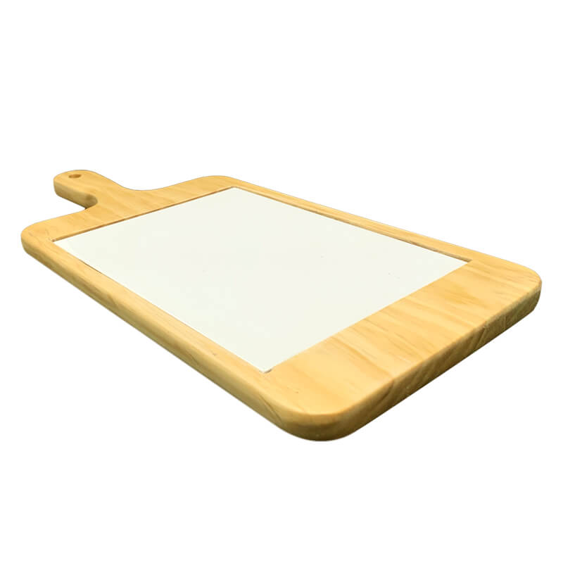 The Rectangle platter plate with tile consists out of a pinewood board and ceramic tile. The pinewood board makes carrying easy and the tile makes it convenient to hold warm food or cheese. impress your quests by personalizing your rectangle platter plate with tile with your favorite design to create a beautiful food platter.